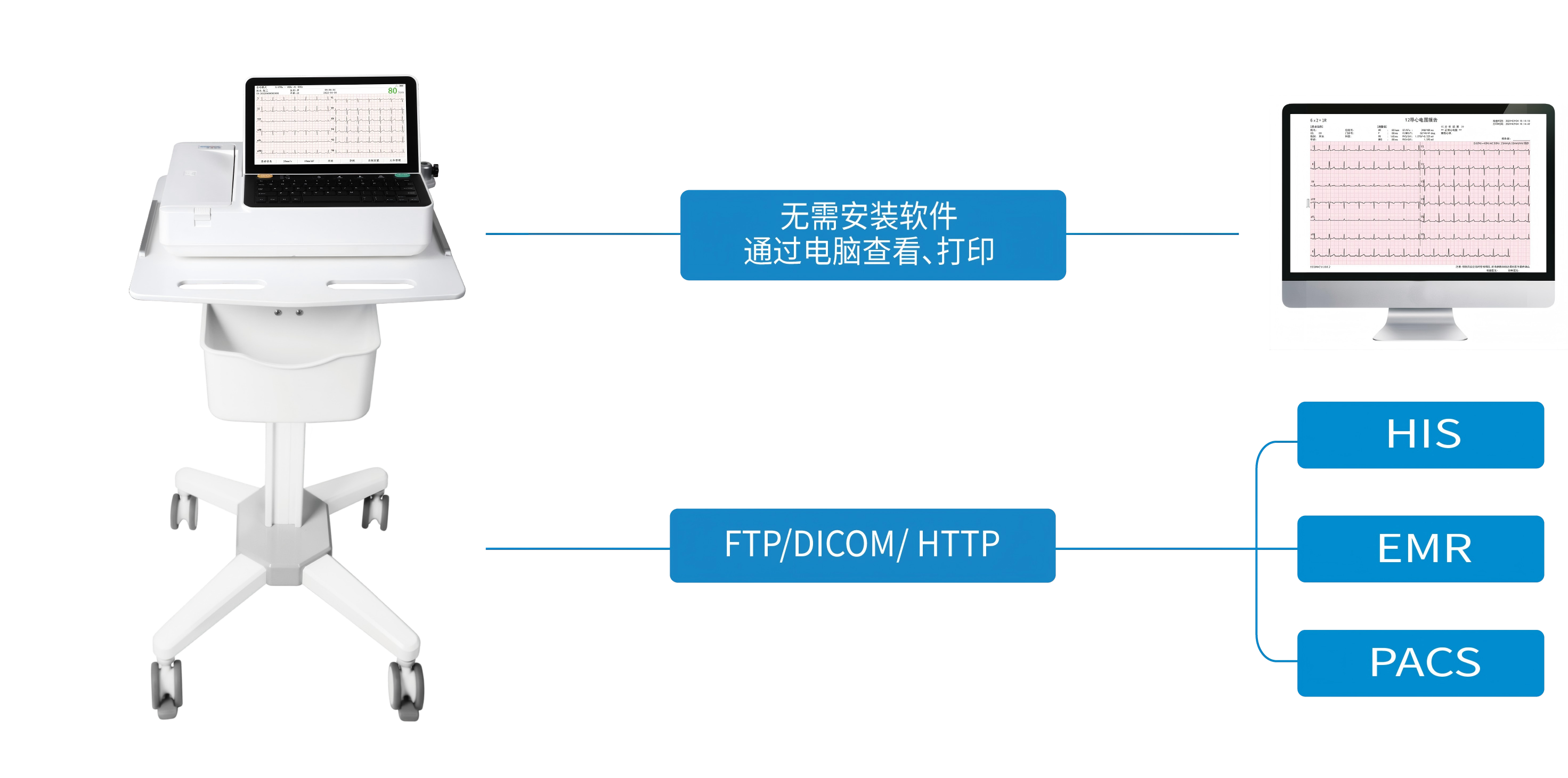 10.1英寸触摸屏,0~90°视角调节,ECG标准网格背景