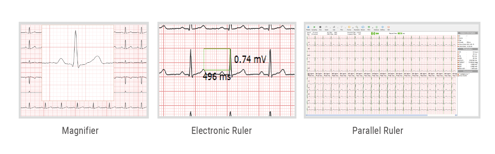Lightweight and portable, supports 12 leads and 9 leads acquisition modes. Supports pacemaker detection, its sensitivity selectable